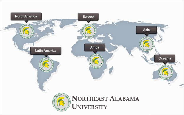With its global presence, Northeast Alabama University is within your reach no matter which part of the world you are in. We have our regional consultants and representatives in 6 different continents of the world, which enables us to have extensive reach throughout the world. Our representatives are qualified education experts with years of student consultancy and counseling service experience, and are always ready to counsel students, no matter what their requirements are. The regions where we are present include North America, South America, Europe, Asia, Africa and Australia.